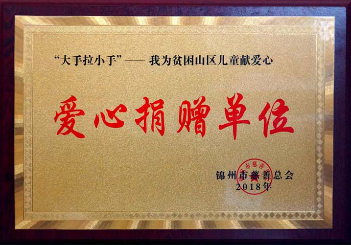 4月11日,錦州市慈善總會召開總結(jié)表彰大會,表彰在2018年慈善捐贈工作中表現(xiàn)突出的先進(jìn)單位,我公司被授予“愛心捐贈單位”稱號。