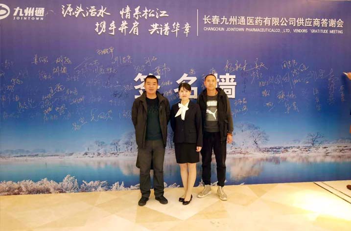 公司重點(diǎn)客戶長春九州通醫(yī)藥有限公司在公司總部舉行了供應(yīng)商答謝會(huì),公司營銷中心銷售一部總監(jiān)單力軍攜當(dāng)?shù)貥I(yè)務(wù)經(jīng)理參加了此次會(huì)議,公司品種在此次會(huì)議中較好地完成了促銷任務(wù)。