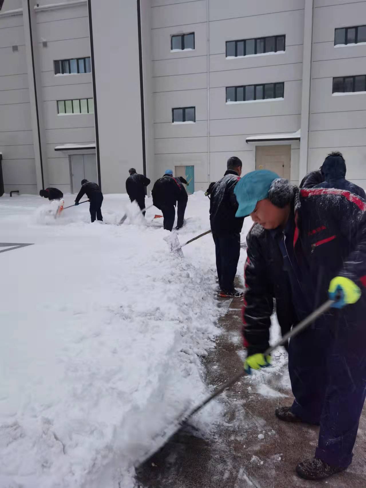 為保障公司倉(cāng)庫(kù)內(nèi)的產(chǎn)品能順利發(fā)貨,11月9日一大早,營(yíng)銷中心內(nèi)勤人員在營(yíng)銷總監(jiān)郭少剛的帶領(lǐng)下,拿著雪鍬、掃把等工具趕到倉(cāng)庫(kù)前進(jìn)行清雪。在寒冷的環(huán)境中,大家團(tuán)結(jié)協(xié)作,不畏嚴(yán)寒,一個(gè)個(gè)臉通紅,氣喘吁吁,有序的清理著厚厚的積雪。大家有的揮舞著雪鍬鏟冰除雪,有的拿著掃帚清掃路面,在機(jī)械化鏟車的配合下,經(jīng)過(guò)兩個(gè)多小時(shí)的奮力,清除了倉(cāng)庫(kù)門(mén)前厚厚的積雪,確保了運(yùn)輸發(fā)貨車輛正常通行。